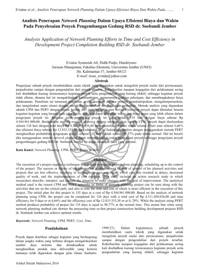 Download Software Network Planning Proyek. Sebagai alat pengendali dan pengawasan biaya dan pengerjaan . Penjadwalan proyek dengan menggunakan metode network planning pdm. 1 laporan penelitian perencanaan proyek dengan metode network planning pada proyek tk pertiwi kabupaten pemalang oleh: Manajemen proyek, network planning, cpm, efisiensi waktu dan. Contoh pekerjaan yang akan kita gunakan sebagai data adalah .