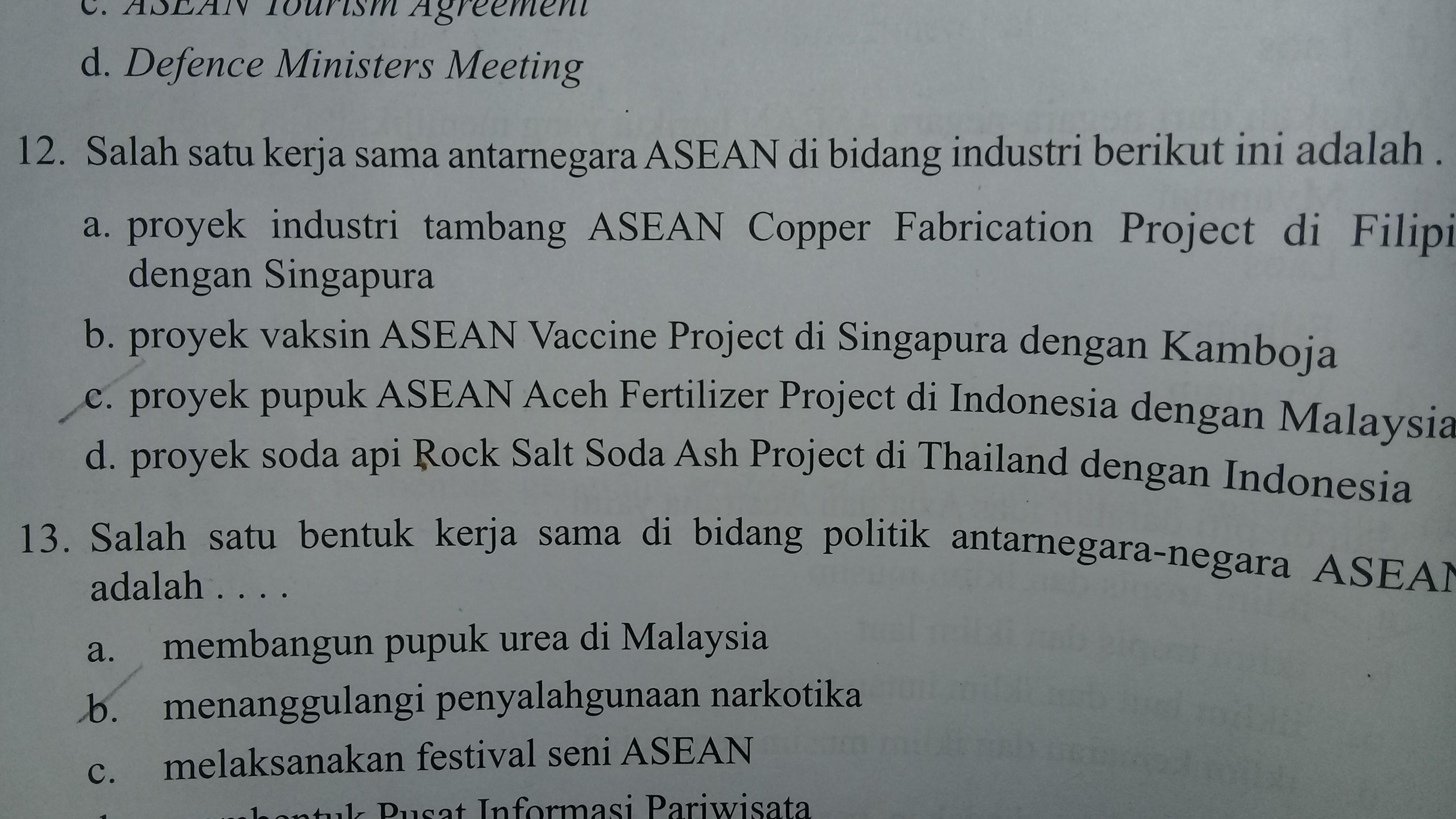 Sebutkan Proyek Proyek Industri Bersama Asean. · proyek pabrik urea di malaysia (asean urea project). Proyek pabrik pupuk urea ammonia di aceh, indonesia (asean aceh fertilizer project). 1) industri pupuk urea berada di negara indonesia dan malaysia · 2) industri abu soda yang berada di negara thailand · 3) industri tembaga yang . Proyek industri asean di indonesia berupa pendirian sebuah proyek pupuk urea. Beberapa proyek industri asean sebagai berikut.