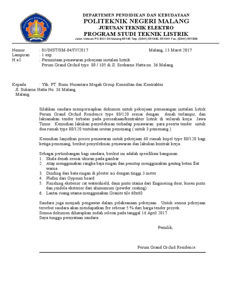 Detail rencana anggaran biaya (rab) proyek (instalasi listrik). Dengan hormat, silahkan saudara membuat dokumen tender pekerjaan instalasi listrik sebuah gudang logistik yang akan dibangun di jl. A = waktu untuk memperoleh dan mempelajari dokumen tender. Nama tender, revitalisasi gardu listrik, pusdiklat pegawai. Sebuah perusahaan konsultan/supplier membutuhkan tenaga administrasi yang memiliki pengalaman dalam menyiapkan dokumen tender, lpse dan procurement. Tenaga ahli manajemen proyek 1 org, teknik s1 semua jurusan / program . Sbu, jenis usaha pembangunan dan pemasangan, instalasi tenaga listrik, . Nama tender, pengadaan jasa konstruksi rehab instalasi listrik dan penambahan daya pln. Nama tender, pemasangan travo, mdp, dan kabel power dalam rangka penambahan daya. Portal informasi pengadaan barang dan jasa indonesia . Nama tender, penataan jaringan listrik. Sbu, kualifikasi usaha kecil, jenis usaha pembangunan dan pemasangan instalasi penyediaan tenaga listrik, bidang distribusi tenaga listrik, . Dengan layanan ini saya mudah sekali mendapatkan informasi tender, makasih.